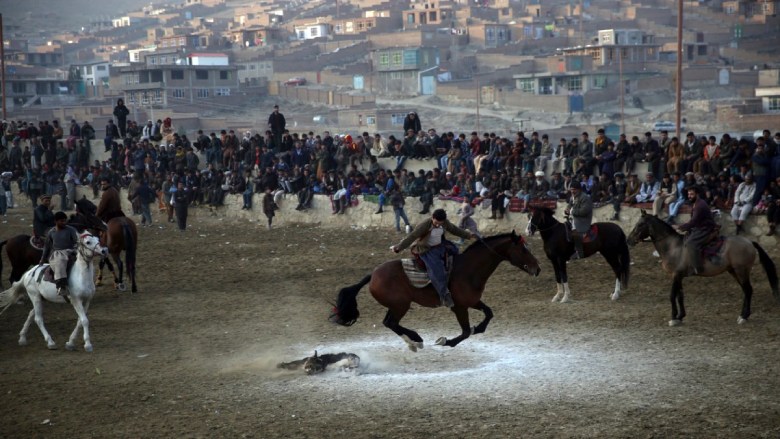 В бузкаши игроки на лошадях должны поймать тушу козы и переместить ее в ворота. По своей сути данный вид спорта, который пришел с давних времен, очень похож на поло, но без клюшки и мяча. Однако, те кто видел бузкаши, сравнивают его с американским футболом, по крайней мере в плане грубости.