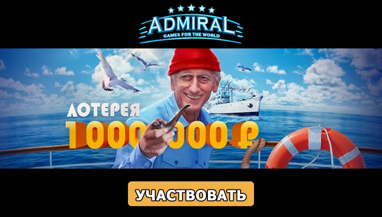 Скорее регистрируйтесь в казино Адмирал и присоединяйтесь к акции, приуроченной ко дню рождения выдающегося исследователя Жака-Ива Кусто. Лотерея стартует 11 июня и завершится 16 июня в 19:00 по МСК. Для участия в розыгрыше требуются билеты. Лотерейный билет можно приобрести за 100 рублей. Также билет можно получить за пополнение счета. За каждый депозит размером от 1000 рублей полагается 1 лотерейный билет. При пополнении счета от 2000 рублей Вы получите два обычных и один Золотой билет, который в случае выигрыша удваивает приз.