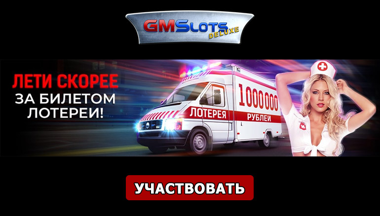 Ко Дню скорой помощи казино ГМС Делюкс (GMS Deluxe Casino) запускает масштабную лотерею с призовым фондом в один миллион рублей. Слышите звук сирены? Это неотложная азартная помощь мчится к Вам. Всех участников акции ждет массовая терапия крупными выигрышами. Скорее приобретайте лотерейные билеты и участвуйте в розыгрыше денежных призов праздничной акции в честь Дня скорой помощи от казино ГМС Делюкс!