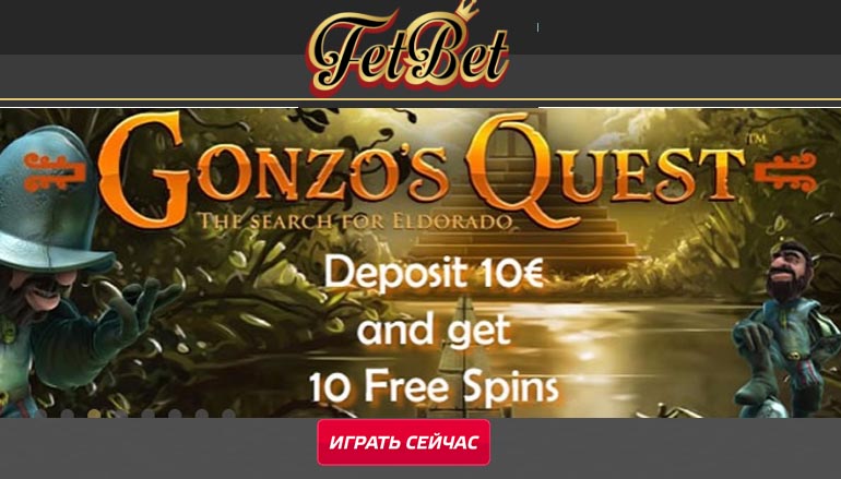 Многие века исследователи пытаются отыскать путь к воротам золотого города Эльдорадо и найти его сокровища. Пополни свой игровой счет и получи 10 фриспинов по бонусу на депозит от казино ФетБет в Gonzos Quest. Испытай свою удачу в поисках несметных сокровищ вместе с Гонзо!