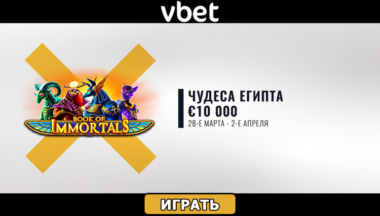 Благодаря новой игре «Book of Immortals» от популярного разработчика игр для онлайн казино компании айСофтБет (iSoftBet) Вы сможете стать участником увлекательного и поучительного путешествия по загадочному Египту. Сокровища древнего Египта окажутся в Ваших руках! Делая ставки в новом слоте «Book of Immortals» в казино Вбет (Vbet Casino), Вы будете получать максимум удовольствия и шанс существенно улучшить свое финансовое положение. Призовой фонд промо акции в размере 10 тысяч евро вызовет интерес даже у самых опытных посетителей сайтов онлайн азартных игр.