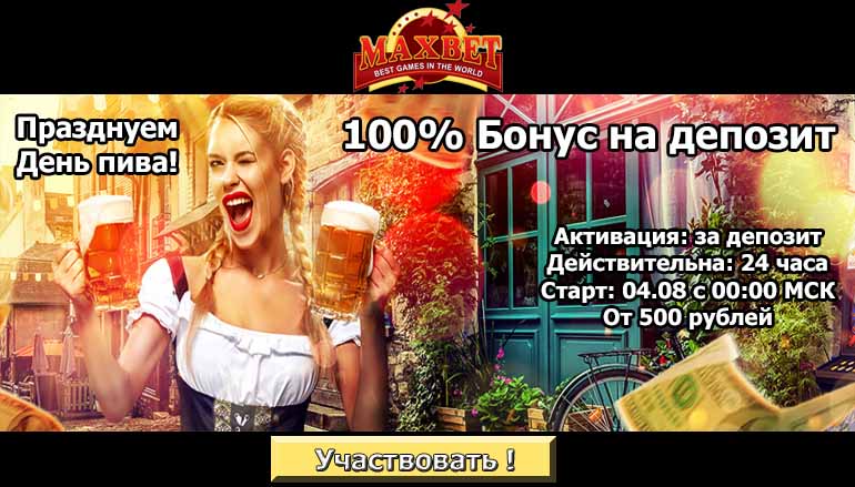 Специальное предложение от Максбет Слотс наверняка заинтересует многочисленных посетителей сайтов онлайн казино в России и других странах! Но, помните, предложение действует только один день – четвертого августа! Так что, поклонникам онлайн азартных игр надо поспешить! У Вас всего один день, чтобы воспользоваться отличной возможностью и совместить приятное с полезным! Примите участие в однодневной промо акции от онлайн казино Максбет Слотс и получите 100% бонус!