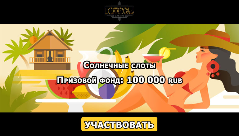Хорошие новости! Денежные выигрыши в турнире «Солнечные слоты» от казино ЛотоРу (LotoRu Casino) помогут Вам справится с этой задачей на отлично! Помните, у Вас есть все шансы стать обладателем части солидного призового фонда в сто тысяч рублей! Победителю акции достанется самый крупный выигрыш в размере 25 тысяч рублей! Посетители сайтов онлайн азартных игр в России непременно заинтересуются подобной возможностью!