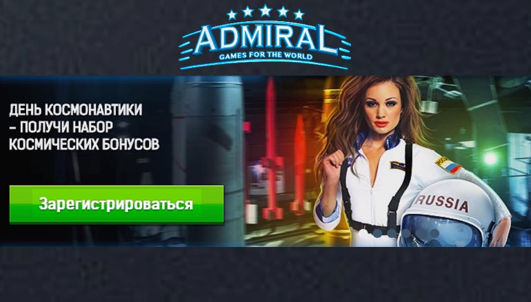 Промо акция онлайн казино Адмирал 777 в честь 56-ой годовщины первого полета человека в космос обещает просто «космические» бонусы! 100%-ый бонус на депозит на сумму до 15 тысяч рублей, и это еще не предел!