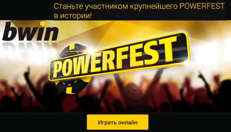 Не пропустите турнир онлайн покера Powerfest! Произведите фурор на этой уникальной в своем роде 15-дневной серии покерных турниров. Вы можете выбрать любой из 224-х самых разнообразных турниров. К Вашим услугам: турниры в формате Bounty, турниры с ребаями и возможностью повторного участия, а также турбо-турниры и многие другие. Бай-ины начинаются уже от 5 долларов!
