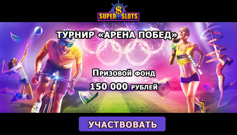 Присоединяйтесь к участникам турнира «Арена побед» от казино Супер Слотс прямо сейчас! Десять самых сильных, самых быстрых, ну и кончено же самых удачливых участников, станут победителями соревнования. Эта десятка счастливчиков разделит между собой призовой фонд турнира размером в 150 тысяч рублей! Покажите все свои сильные стороны в борьбе за денежные призы от казино Супер Слотс!