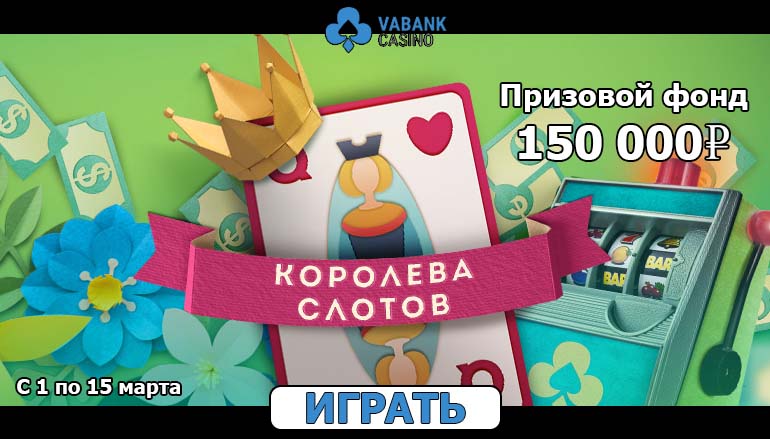 Сегодня Королева Слотов щедра как никогда. Она дарит возможность всем посетителям сайтов онлайн азартных игр заработать крупные денежные призы. Для этого достаточно принять участие в новом увлекательном турнире казино ВаБанк (VaBank Casino). Это потрясающий шанс окунуться в мир игровых автоматов! Скорее присоединяйтесь к участникам двухнедельного соревнования «Королева слотов» от казино ВаБанк! Призовой фонд королевского турнира составляет 150 тысяч рублей!