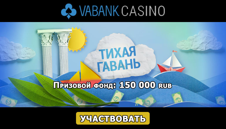 Исключительную возможность выиграть крупную сумму денег дарит всем желающим турнир «Тихая гавань» от казино ВаБанк (Va-Bank Casino). Привлекательные условия акции, простой и доступный способ заработать крупные денежные призы заинтересуют поклонников игровых автоматов.