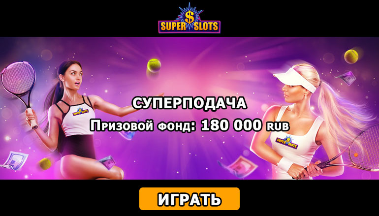 Если Вы активно увлекаетесь спортом и Вам не чужд соревновательный дух, тогда новая акция «Суперподача» от казино Супер Слотс (Super Slots Casino) именно для Вас! Становитесь участником увлекательного турнира и забирайте заслуженные призы. Внушительный призовой фонд в размере 180 тысяч рублей гарантирует участникам азартной промо акции не только интересный досуг, но и материальную выгоду. Высокая конкуренция обострит интерес к игре и сделает игровой процесс более увлекательным и азартным.