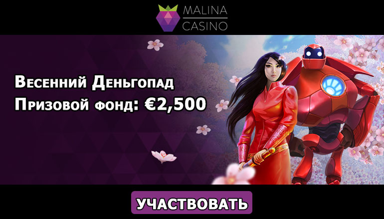 Весеннее настроение Вам гарантировано! Забудьте о постоянной нехватке средств, это сдерживающее обстоятельство уже в прошлом. Денежные призы в промо акции «Весенний Деньгопад» в казино Малина (Malina Casino) позволят Вам побаловать себя и приступить к реализации давних идей.