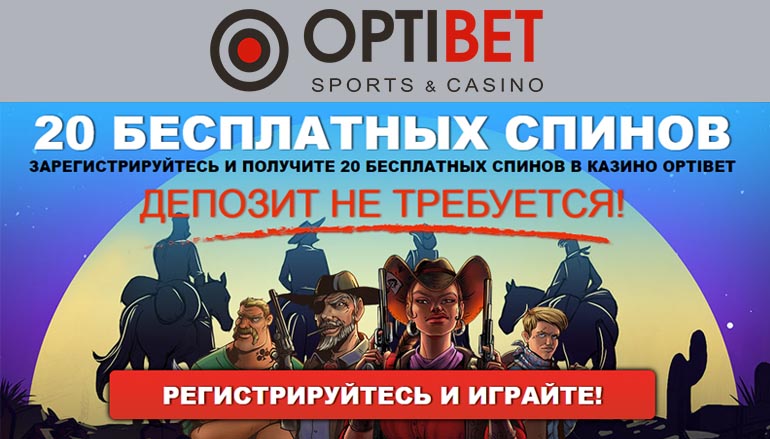 20 бесплатных спинов по бездепозитному бонусу казино Оптибет!