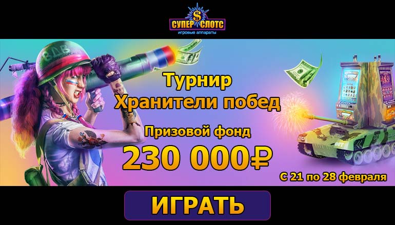 Специально ко Дню защитника Отечества многие сайты онлайн азартных игр подготовили для своих посетителей праздничные турниры и промо акции. Эти соревнования для тех, кто не боится трудностей и сможет преодолеть любые преграды, а также для тех, кто знает цену победе! Именно такие игроки смогут принять участие в новом турнире «Хранители побед» от казино Супер Слотс (Casino Super Slots)!
