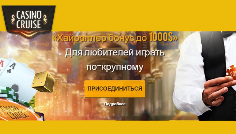 Пополните счет и получите 25% суммы в подарок благодаря хайроллер бонусу Казино Круиз! Эксклюзивно для российских игроков!