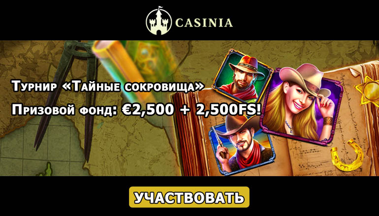 Осуществите мечту детства и отправляйтесь на поиски настоящего клада в новой совместной промо акции от популярного онлайн казино и одного из ведущих провайдеров Прагматик Плей (Pragmatic Play)! Вас ждут несметные богатства, золото, бриллианты, и что не менее важно, настоящий дух авантюризма, которые дарит Вам новый турнир «Тайные сокровища» от казино Казиния (Casinia Casino)!