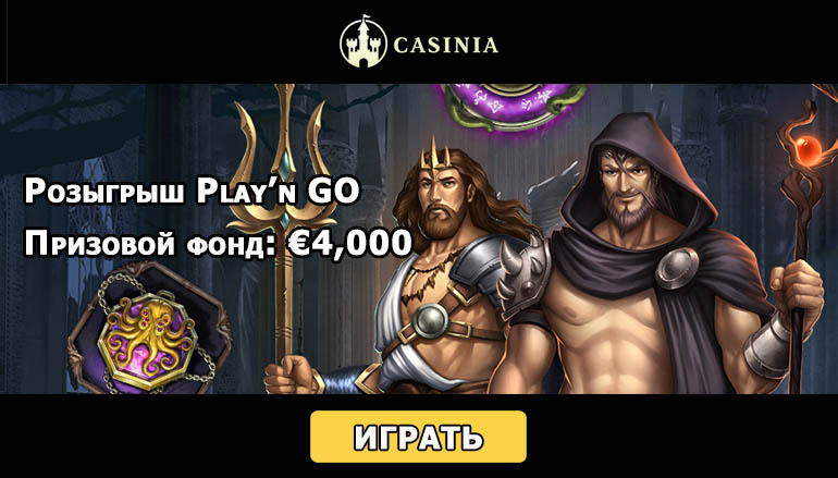 С 23 по 29 августа заходите на сайт казино Казиния (Casinia Casino), где проходит захватывающий турнир от знаменитого разработчика игр. Наслаждайтесь красочными видеослотами, собирайте побольше лотерейных билетов и участвуйте в розыгрыше денежных наград. Призовой фонд турнира «Розыгрыш Play’n GO» в казино Казиния составляет 4000 евро! Не упустите возможность не только отлично провести время, но еще и получить щедрые денежные призы!