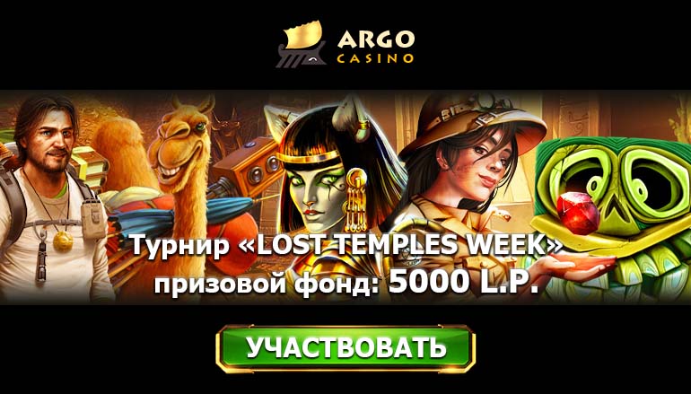 На этой неделе в турнире «Lost Temples Week» разыгрывается щедрый призовой фонд в размере 5 тысяч ясонов! Награду получат топ 10 самых активных участников акции. Если Вы завсегдатай сайтов онлайн казино, эта акция именно для Вас! Итак, делайте ставки в турнирных играх, которые представлены на сайте казино в разделе Акции, и ловите бонусы на счет! Назовите любимую игру и боритесь за призы вместе с остальными единомышленниками!
