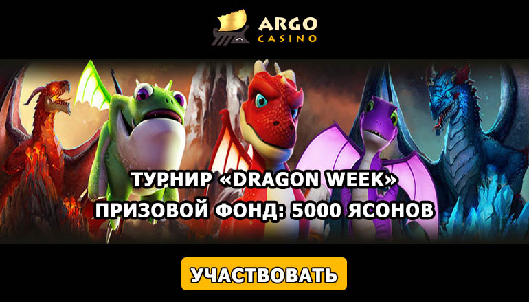 Страстные любители онлайн игровых автоматов находятся в постоянном поиске новых и интересных предложений от популярных онлайн казино. Слото-турнир «Dragon Week» от казино Арго (Argo Casino) в полной мере соответствует таким требованиям. Это привлекательное предложение для самого азартного контингента гемблеров, которые готовы проявлять мобильность и быстро перестраиваться под новые правила.