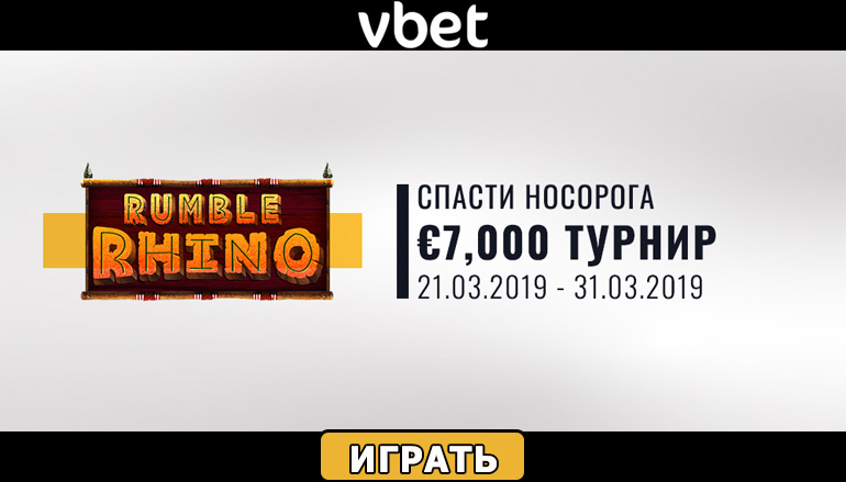 Итак, если Вам не безразлична судьба животных, то скорее заходите на сайт казино Вбет (Vbet Casino), где проходит турнир компании Париплей. С 21 по 31 марта наслаждайтесь игрой на новом увлекательном слоте Rumble Rhino, а заодно выигрывайте щедрые призы в акции «Спаси Носорога» в казино Вбет! Отправьтесь в путешествие по африканской саванне вместе со слотом Rumble Rhino и возвращайтесь оттуда с победой и крупным выигрышем!