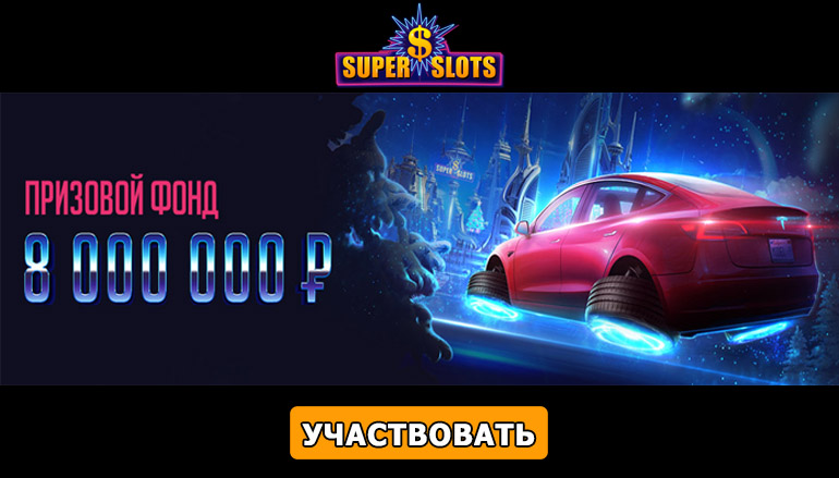 С 25 ноября по 6 января присоединяйтесь к участникам новогодней акции «Покорители времени» от казино Супер Слотс. Все что от Вас требуется – это делать депозиты, играть в слоты и собирать билеты. В акции предусмотрено 50 подарков на общую сумму 8 миллионов рублей. Ну а главным призом соревнования является автомобиль Tesla Model 3 стоимостью 3 500 000 рублей. Почувствуйте атмосферу праздника уже сейчас!