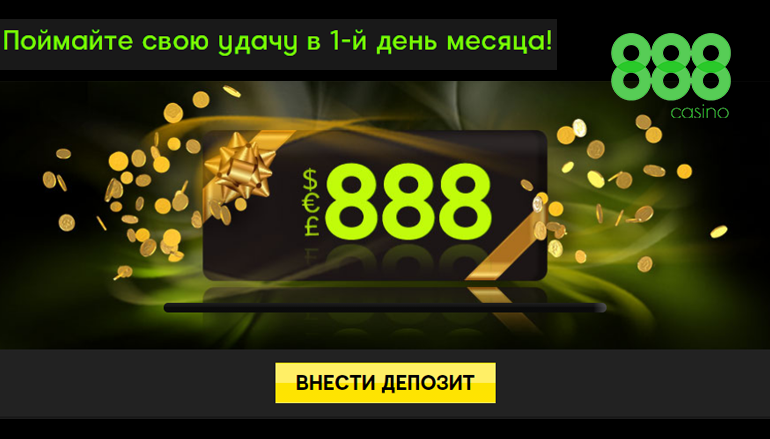 Поймайте свою удачу в первый день каждого месяца и выиграйте до 888 евро по промо акции 888казино!