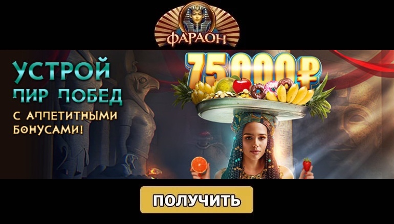 Максимальные размеры денежных бонусов составляют 5 тысяч, 10 тысяч, 15 тысяч, 20 тысяч и 25 тысяч рублей соответственно. Не теряя времени, приступайте к делу, чтобы успеть забрать все пять бонусов. Воспользуйтесь шансом сорвать куш в 75 тысяч рублей и 75 фриспинов! Устройте грандиозный пир побед с аппетитными бонусами от казино Фараон Бет! Ну а для того, чтобы узнать об остальных бонусных предложениях и промо акциях данного игорного заведения, ознакомьтесь с нашим обзором казино Фараон Бет.