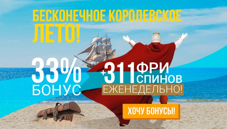 Король устраивает летнюю промо акцию для всех посетителей сайта казино Кинг Билли (King Billy Casino). Если Вы тоже относитесь к той категории людей, которым с наступлением осени крайне сложно смириться с мыслью, что до следующего лета еще долгих девять месяцев, то воспользуйтесь королевским предложением. Не спешите прощаться с летом, у Вас еще есть время для того, чтобы вновь окунуться в море призов на сайте казино Кинг Билли!