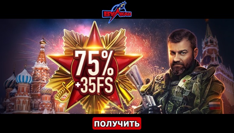 В период с 23 по 28 февраля заходите на сайт казино Клуб Вулкан (Club Vulkan Casino) и участвуйте в праздничной промо акции. Здесь ко Дню защитника Отечества не дарят принадлежности для бритья, носки, пивные кружки или другие надоевшие подарки. Клуб Вулкан точно знает, какой подарок порадует мужчин – денежный приз до 30 тысяч рублей и 35 фриспинов. Такой бонусный презент точно не будет пылиться на полке, ему сразу же найдется применение на сайте виртуального игорного заведения!
