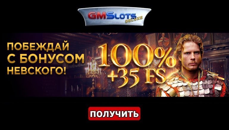 В период с 13 по 17 мая заходите на сайт казино ГМС Делюкс (GMS Deluxe Casino) и участвуйте в промо акции, приуроченной ко дню рождения великого князя. Всех участников акции ждет 100% бонус на депозит и 35 фриспинов в игре Славяне. Забирайте до 20 тысяч рублей и бесплатные вращения, и побеждайте с бонусом Невского!