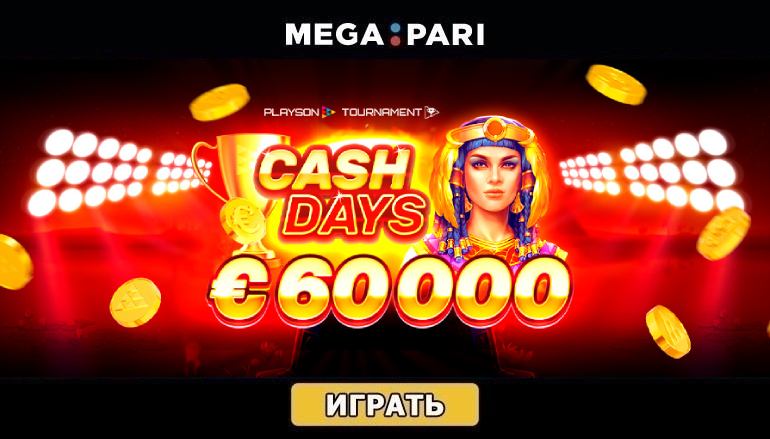 Турнир «Денежная неделя» в Мегапари стартует 1 августа и завершится 8 августа в 23:59 GMT. В этот период Вам нужно играть в турнирные слоты компании Playson, совершая ставки размером от 0,5 евро.