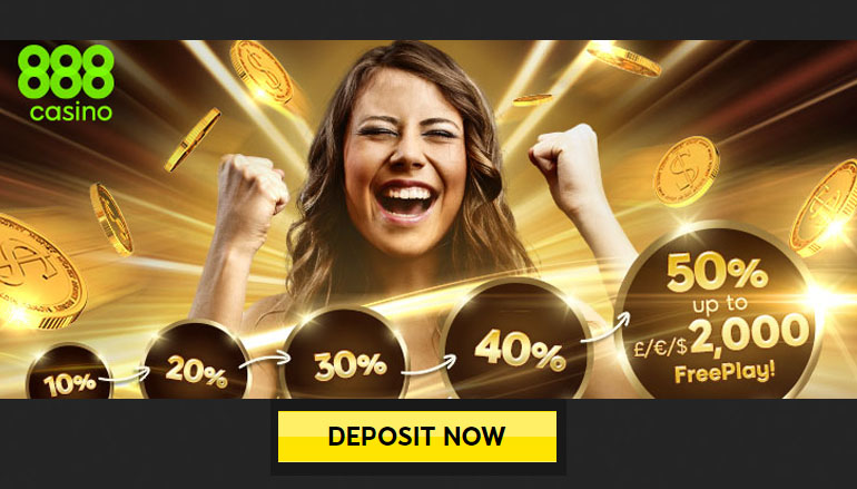 Согласно промо акции онлайн казино 888, уже первый твой депозит будет вознагражден 10%-ым бонусом на сумму до 200 евро. Второй – 20%-ым на сумму до 400 евро! Дальше – больше! Третий депозит принесет тебе 30% по бонусу на депозит на сумму до 700 евро. Четвертый – 40% на сумму до 1,5 тысячи евро, а пятый – 50% на сумму до 2 тысяч евро!