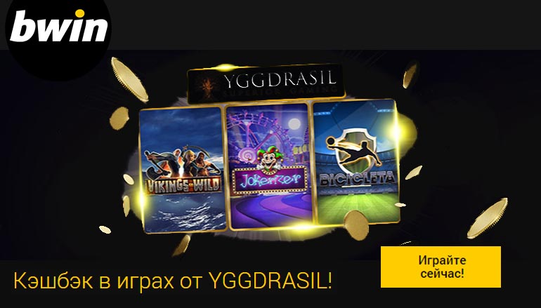 Отличные новости! На рынок азартных игр поступила целая серия новых игр от всемирно известного производителя YGGDRASIL! И у Вас есть прекрасная возможность протестировать их без ненужного риска! Воспользуйтесь своеобразной «страховочной сеткой» в виде щедрого кэшбека от казино Бвин, который вернет Вам 25% проигрыша на сумму до 20 евро!