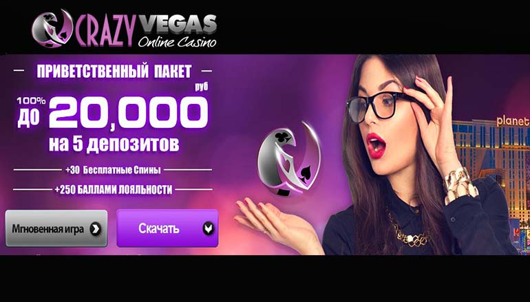 «До 20 тысяч рублей уже просто за то, что Вы с нами», – обещает Crazy Vegas. И это еще далеко не все. Помимо этого подарка, каждый из новых игроков получает 30 бесплатных спинов на игру Game of Thrones («Игра престолов»), а также становится счастливым обладателем 250-ти бонусных баллов лояльности.