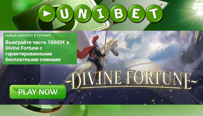 Испытайте новейшую игру Divine Fortune и выиграйте часть призового фонда в 10 тысяч евро в джекпот турнире казино Юнибет.