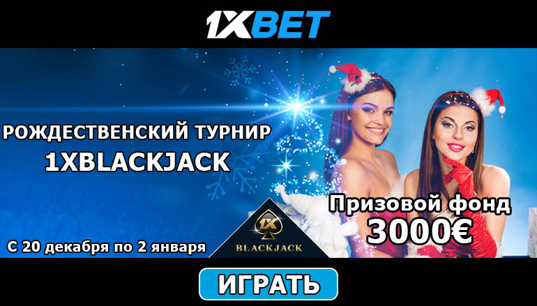 Пока твои друзья нарезают салаты к праздничному столу, зарегистрируй на сайте 1хБет и прими участие в бонусном предложении! Это одно из завершающих 2017 год бонусных предложений, которое может принести тебе до 3 тысяч евро в рождественском турнире Блэкджек от казино 1хБет! Участие в нем пропустить нельзя! В период действия промо акции онлайн казино, с 20 декабря 2017 по 2 января 2018 года, отложи свои дела на потом. Тебя ждет крупный выигрыш!
