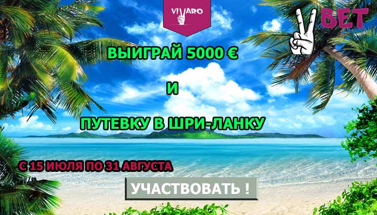 Последний месяц лета — не приговор для тех, кто играет на сайтах онлайн покера. В августе жаркое лето для азартных гемблеров только начинается. Не проспи свою удачу, и тогда щедрый денежный приз до 5 тысяч евро и путевка на Шри-Ланку от Вбет Покер достанется именно тебе! Более того, в промо акцию онлайн казино входит также розыгрыш путевок в Дубай и на Мальдивы. Это горячее летнее предложение от оператора Вбет Покер (Vbet Poker) продлится до 31 августа.