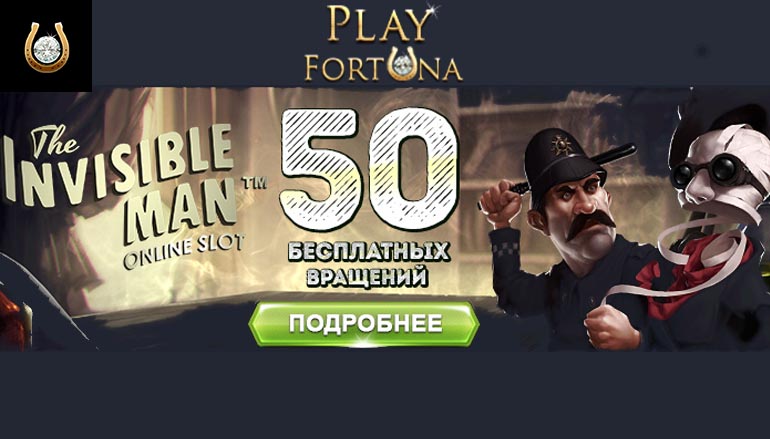 Присоединитесь к сообществу игроков Плей Фортуна, и у Вас будет шанс примерить на себя роль легендарного персонажа «Человека-невидимки» и выиграть крупную сумму, получив до 50 спинов в подарок!.