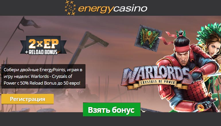 И это еще не все! Если Вы внесете Ваш второй депозит еще на этой неделе, у Вас будут особые преимущества! Благодаря промо акции онлайн казино, вы сможете удвоить число Ваших бонусных очков, так называемых EnergyPoints, играя в игру недели Warlords – Crystals of Power!
