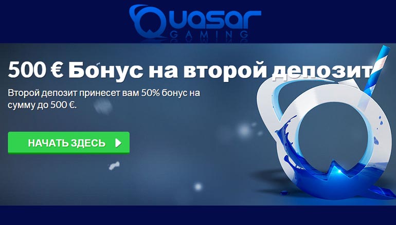 Вы использовали все преимущества уникального приветственного пакета казино Квазар Гейминг? Ваше космическое везение не заканчивается на этом! У Вас есть шанс получить до 500 евро в подарок по бонусу на второй депозит казино Квазар Гейминг!