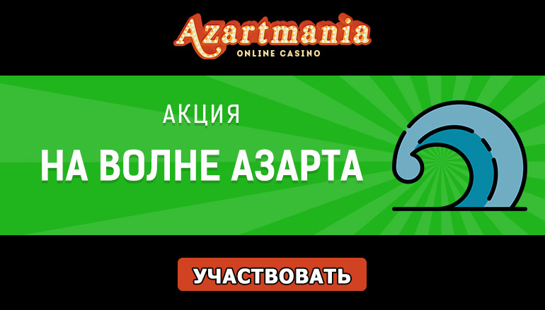 К вниманию приглашаются все азартные любители сайтов онлайн азартных игр, которые увлекаются серфингом! У Вас появился уникальный шанс получить до 75% бонусa в увлекательных эмуляторах в рамках новой промо акции «На волне азарта» от казино Азартмания (Azartmania Casino)! Итак, мчитесь на всех скоростях по волнам азарта и ловите бонусы в одноименной акции от популярного онлайн казино.