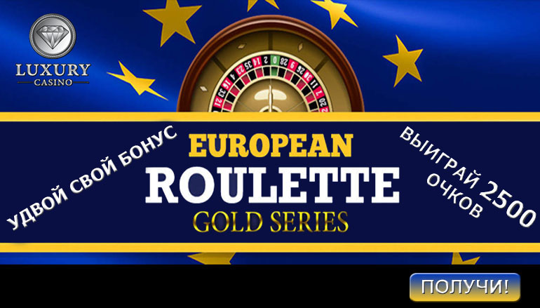 Начиная с первого августа и на протяжении всего месяца (до 30-го августа включительно), у Вас будет возможность совмещать приятное с полезным! Играйте на любимом слоте European Roulette Gold и получайте двойные очки! Условия участия в новой промо акции онлайн казино Лакшери предельно просты! Все что Вам понадобится, это создать учетную запись на сайте казино и начать играть! Минимальный размер депозита составляет 100 евро.