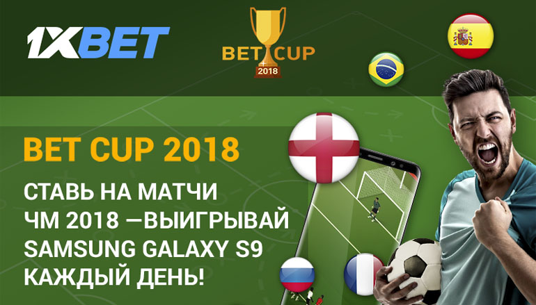 Добавь искры в футбольные страсти этим летом и прими участие в специальной акции от 1хБет (1xBet)! Это предложение бесспорно заинтересует всех азартных болельщиков футбола, которые следят за матчами ЧМ-2018 и активно делают ставки на своих фаворитов. Букмекерская контора 1хБет предлагает усилить ощущение футбольной эйфории и получить шанс выиграть роскошный приз в виде элегентного смартфона. Для этого Вам необходимо стать участником акции BetCup от 1хБет и получить шанс на розыгрыш Samsung Galaxy S9.