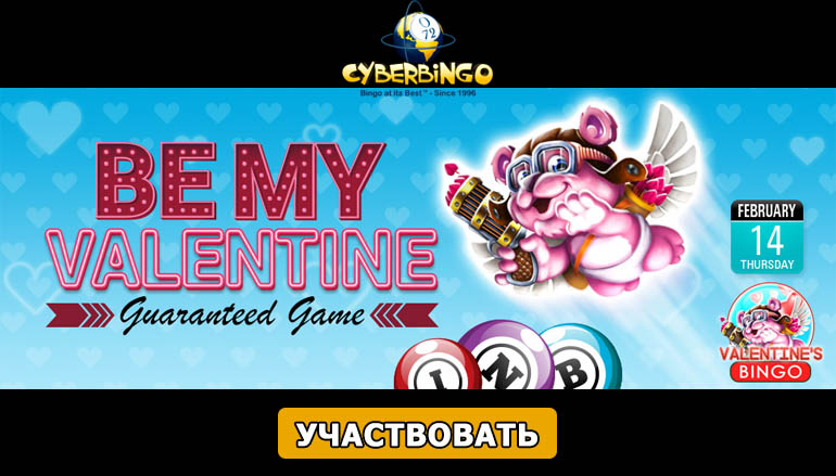 Гарантированная игра с призовым фондом в размере 1500 долларов в акции «Будь моим Валентином» от Кибер Бинго (Cyber Bingo) сможет растопить сердце каждого любителя азартных розыгрышей! Уверены, солидные призовые и выгодные условия праздничной акции смогут заинтересовать даже самых искушенных поклонников лотерей.