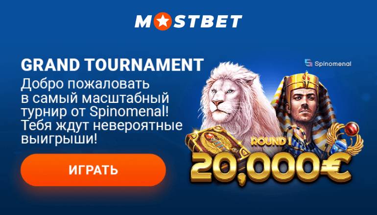 Приготовьтесь, октябрь будет полон веселья и азарта! В этом месяце всех любителей слот-турниров ждет множество захватывающих соревнований, среди которых Grand Tournament в МостБет. Добро пожаловать в самый масштабный турнир от компании Spinomenal, где победителей ждут невероятные выигрыши из общего призового фонда в размере 20 тысяч евро!
