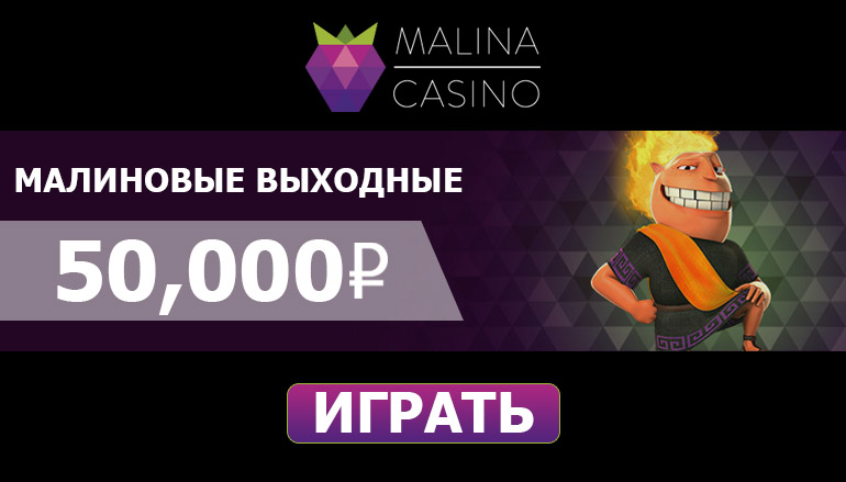 Чем можно заняться в выходные, чтобы как следует отдохнуть, повеселиться а также провести время с пользой? Казино Малина (Malina Casino) знает ответ на этот вопрос. Оторвитесь от серых будней и получите массу удовольствия, Вас ждут малиновые выходные! Каждую неделю у Вас есть возможность получить 50% бонус и 50 фриспинов от казино Малина!