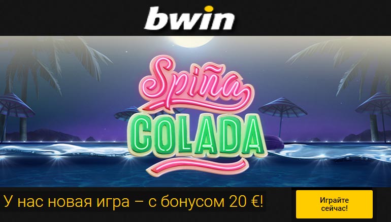 В сегодняшнем меню – потрясающая новая игра с потрясающим же бонусом! В рамках промо акции онлайн казино Бвин тебе стоит просто внести депозит в размере от 50 евро с использованием промо-кода SPINA 20 и ты сразу же получишь прямой бонус в 20 евро в подарок! Теперь тебе останется лишь погрузиться в чарующую атмосферу Спино Колады и насладиться игрой.