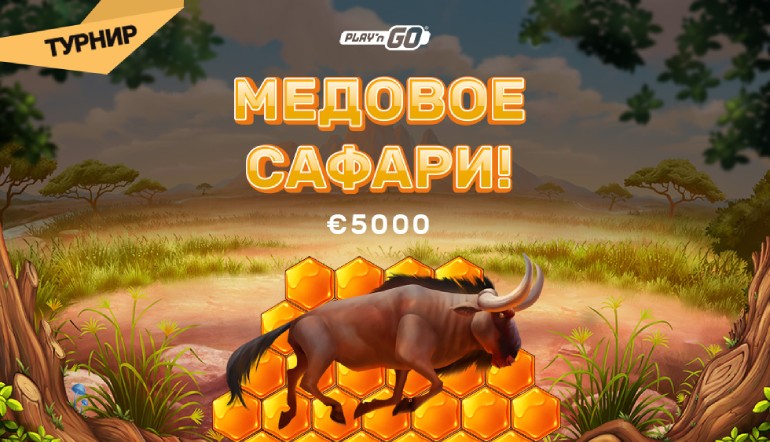 В период с 23 по 28 июля наслаждайтесь красочными слотами компании Плей энд Гоу (Play’n GO). Обойдите других участников по сумме максимальных множителей и забирайте один из пятидесяти щедрых денежных призов. Не упустите возможность отправиться в настоящее путешествие по дикой природе и собрать нектар выигрышей в турнире «Медовое сафари» в казино Плей Фортуна!