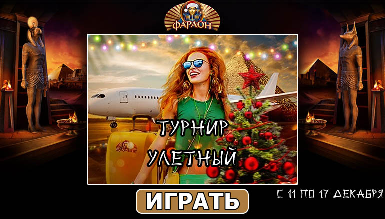 А Вы уже начали готовиться к новогодним праздникам: нарядили елку, купили подарки? А может, уже собираете чемоданы, чтобы улететь в теплые страны и встретить Новый год на берегу океана? В любом случае, лишние деньги Вам не помешают. А выиграть их можно в Улетном турнире от казино Фараон Бет (Pharaon Bet Casino). Принимайте участие в соревновании, ведь призовой фонд динамический, и стартует от 300 тысяч рублей!
