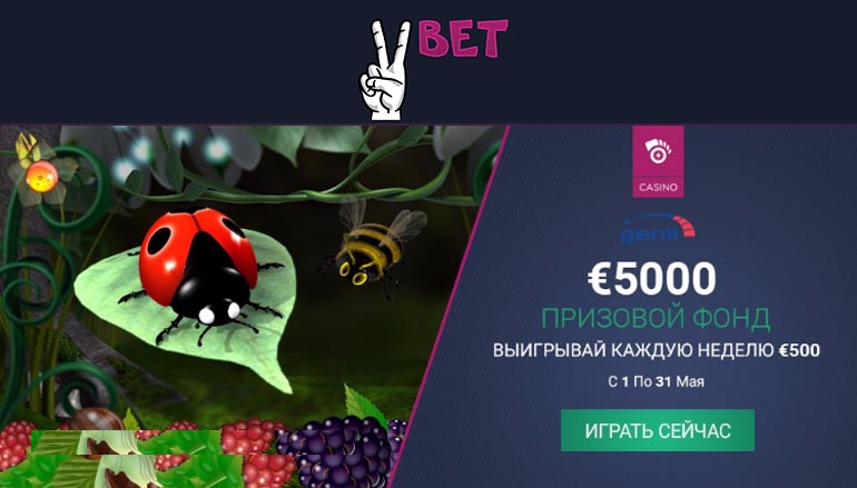 Целых 5 тысяч евро гарантированного призового фонда ждут поклонников сайтов онлайн казино в России в майской акции Вбет. И каждый, кто любит яркие фруктовые слоты, имеет хорошие шансы выигрывать по 500 евро в неделю!