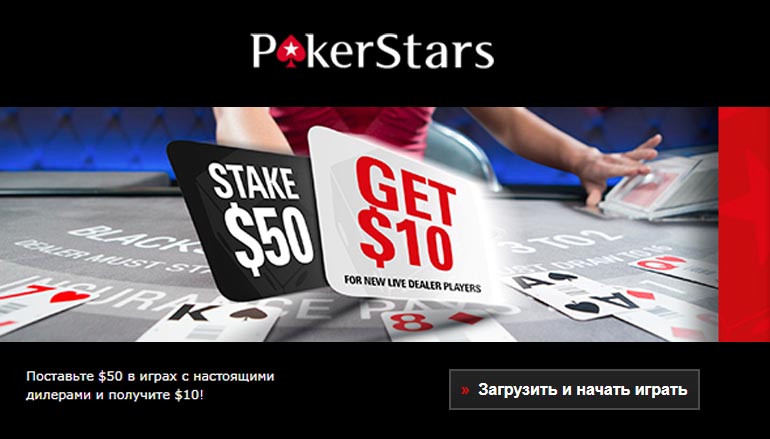 Ведь сразу после этого ты автоматически получишь свои $10 призовых в подарок за игру с настоящими дилерами в казино Покер Старс! Причем, без каких-либо ограничений по выводу или условий по отыгрыванию!