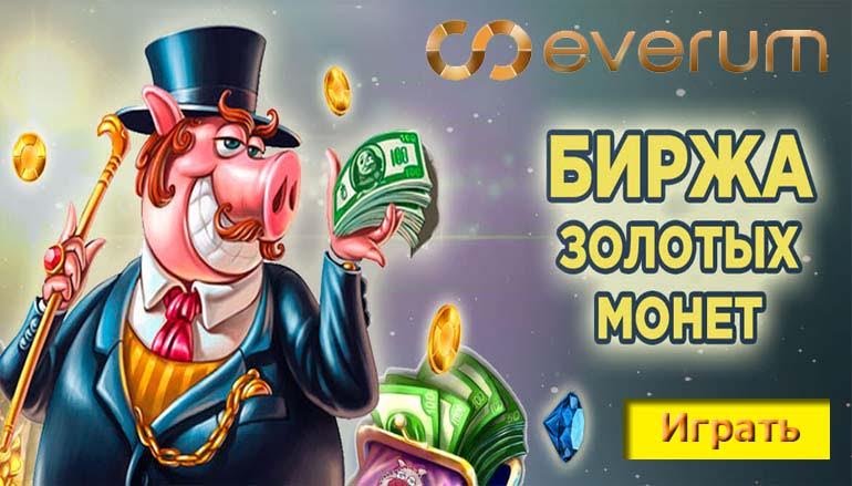 Также казино Эверум ежедневно проводит Золотые аукционы, где Вы можете приобрести один из специальных лотов на заработанные Вами во время игры Золотые монеты. Приобретайте понравившийся лот, предложив за него лучшую ставку. Среди лотов Вы найдете специальные бонусы и фриспины, а также наличные. Ну а если Вам не хватает Золотых монет для покупки того или иного лота, посетите биржу Золотых монет и приобретайте столько монет, сколько Вам нужно. Каждое воскресенье с 18:00 до 21:00 по московскому времени казино Эверум проводит турниры с призовым фондом 300 долларов. Для того, чтобы стать одним из участников, Вам нужно зарегистрироваться и заплатить 10 Золотых монет. Поторопитесь, в турнире предусмотрено всего 14 призовых мест.